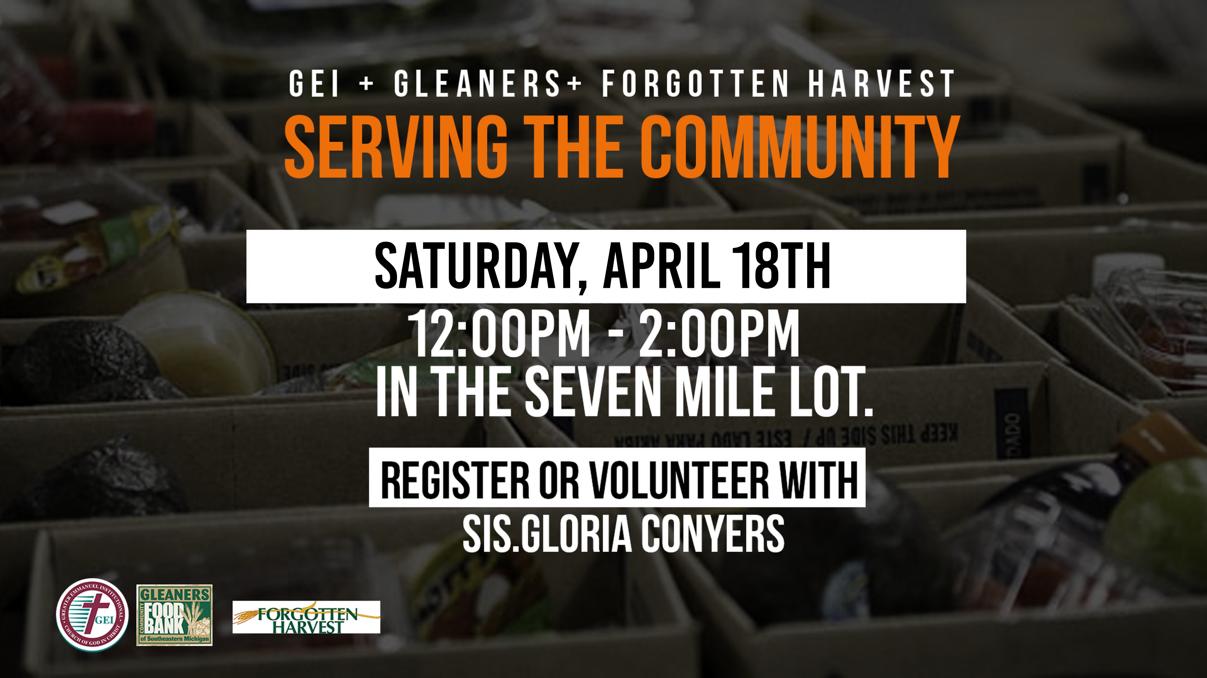 Saturday, April 18th from 12pm – 2pm. Register or Volunteer with Sis.